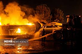 آتشسوزی ۵ تریلی حامل سوخت مایع در اسلامشهر