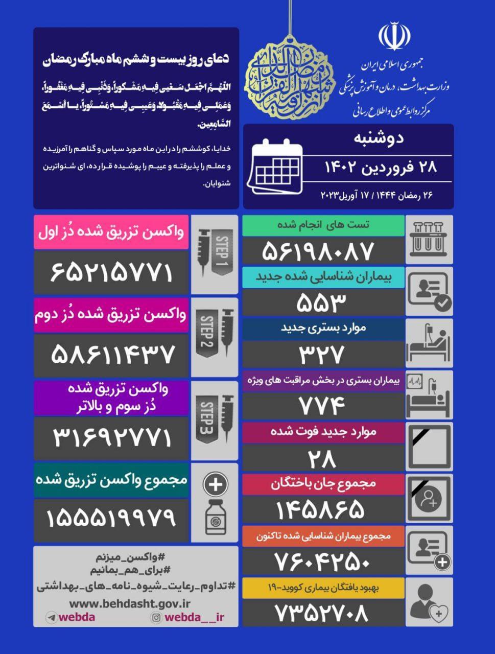 ▫️مبتلایان جدید: ۵۵۳ نفر