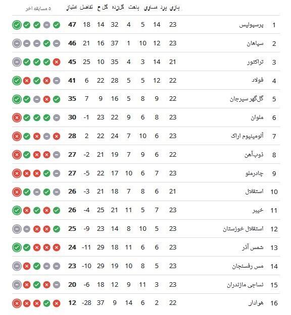 آخرین وضعیت جدول لیگ برتر / پرسپولیس در صدر جدول