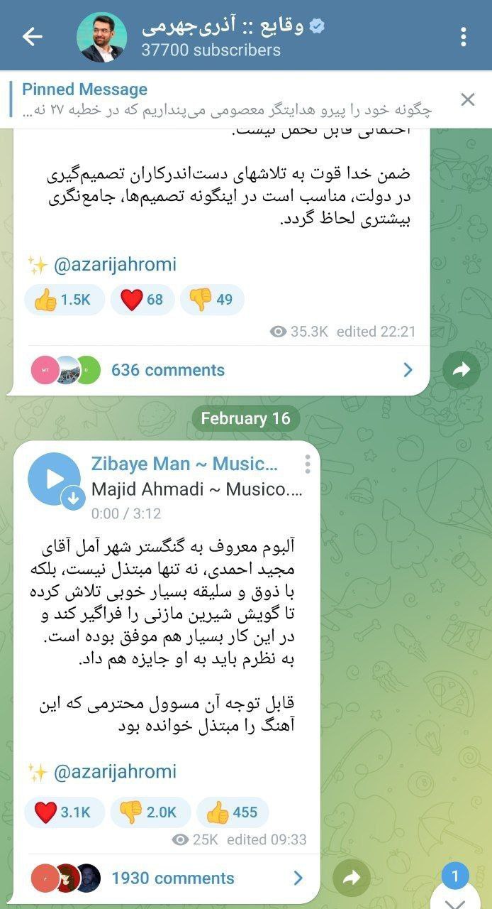آذری جهرمی آهنگ “گنگستر شهر آمل” را در کانال تلگرامی خود قرارداد.