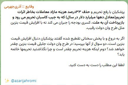 🔹پزشکیان با رفع تحریم و حذف ۳۳درصد هزینه مازاد معاملات بخاطر اثرات تحریم(معادل دهها میلیارد دلار در سال) که به جیب کاسبان تحریم می رود و بازپرداخت آن به ملت، کسری بودجه را جبران می کند نه با افزایش قیمت بنزین مثل طرح وان دولت رقیب.