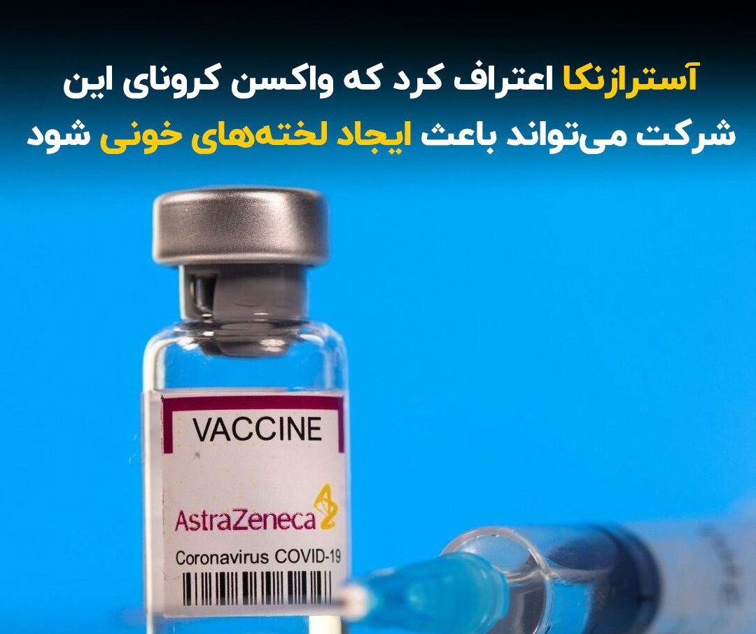 🔹شرکت داروسازی آسترازنکا بعد از سه سال اعتراف کرد که واکسن کووید این شرکت میتواند عوارض جانبی نادری از جمله لختهشدن خون را به همراه داشته باشد. تحقیقاتی انجام شده که نشان میدهد این واکسن میتواند باعث ایجاد لختههای خون در برخی افراد شود که این عارضه ممکن است کشنده باشد.