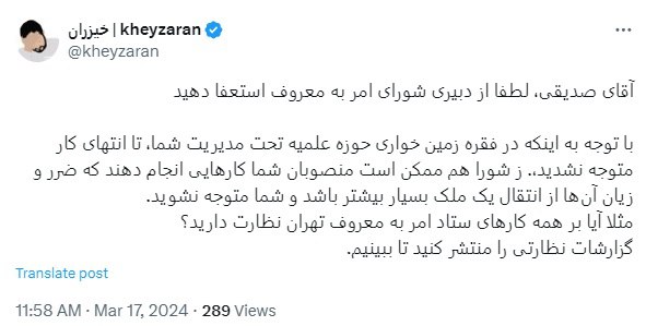 آقای صدیقی، لطفا از دبیری شورای امر به معروف استعفا دهید