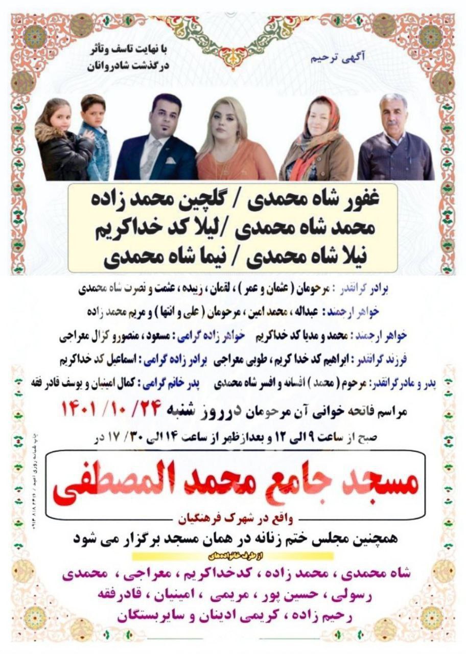 آگهی ترحیم جانباختگان حادثه انفجار منزل مسکونی در بوکان