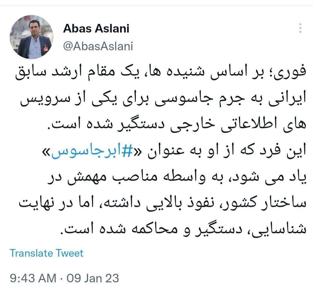 ادعای یک فعال رسانهای: دستگیری یک مقام ارشد سابق ایرانی به اتهام جاسوسی