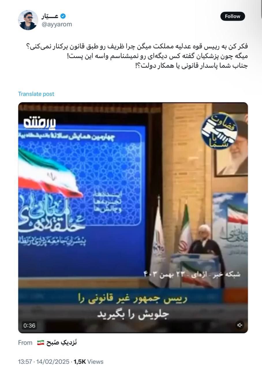 🔹از ساعتی قبل جریان پایداری و مصاف با انتشار فیلم چند ثانیهای تقطیع شده از توضیحات محسنی اژهای رییس قوه قضاییه درباره قانون انتصاب در مشاغل حساس، حمله مجازی را آغاز کردهاند.