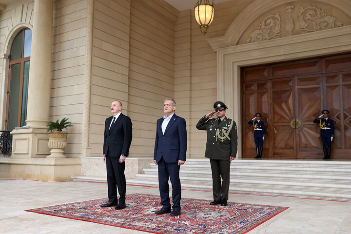 استقبال رسمی علی اف از پزشکیان در باکو
