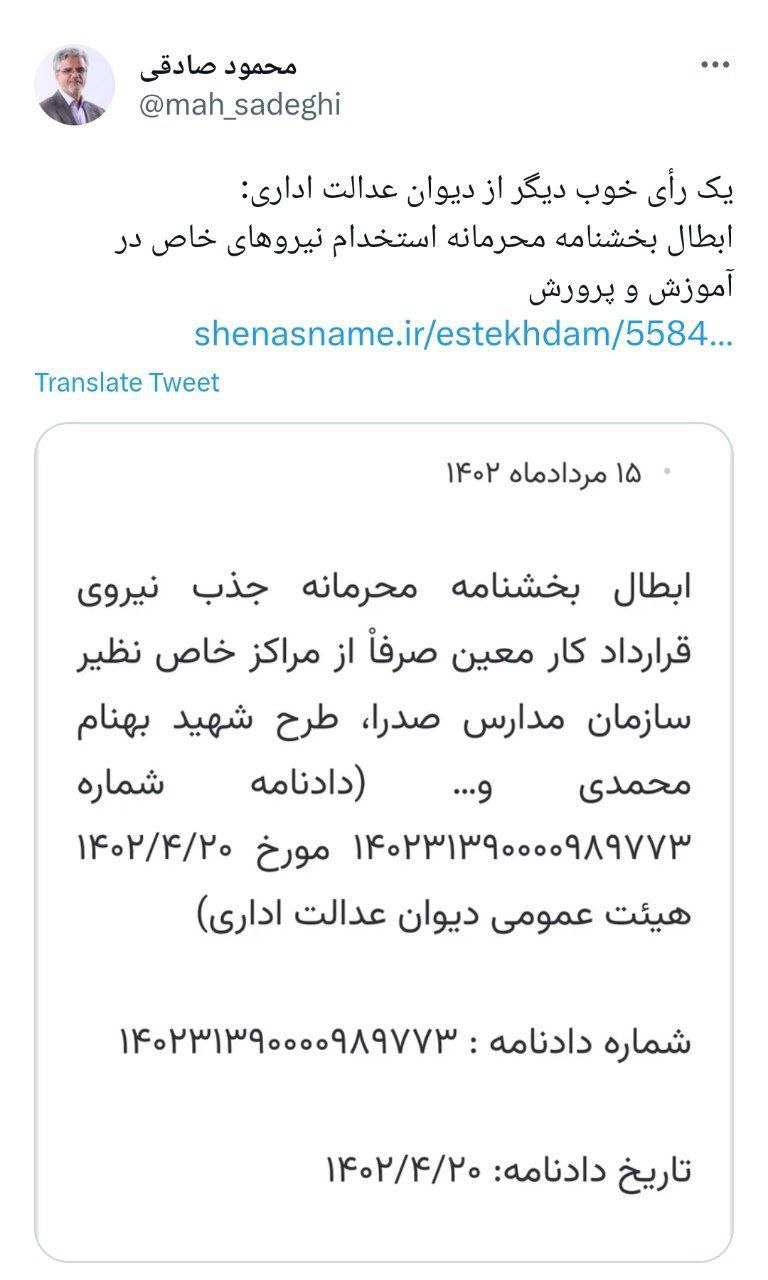 استقبال محمود صادقی نماینده سابق مجلس از رای دیوان عدالت اداری
