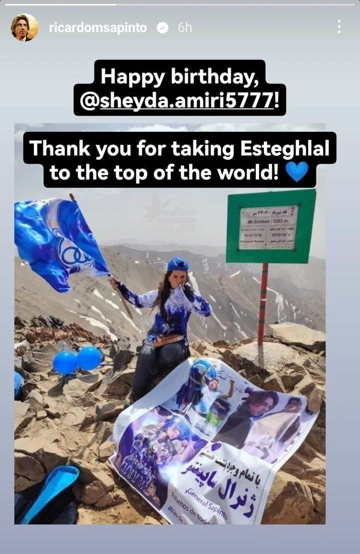 استوری ریکاردو ساپینتو و تبریک تولد دختر کوهنورد استقلال: ممنون که استقلالو به بلندای جهان بردی