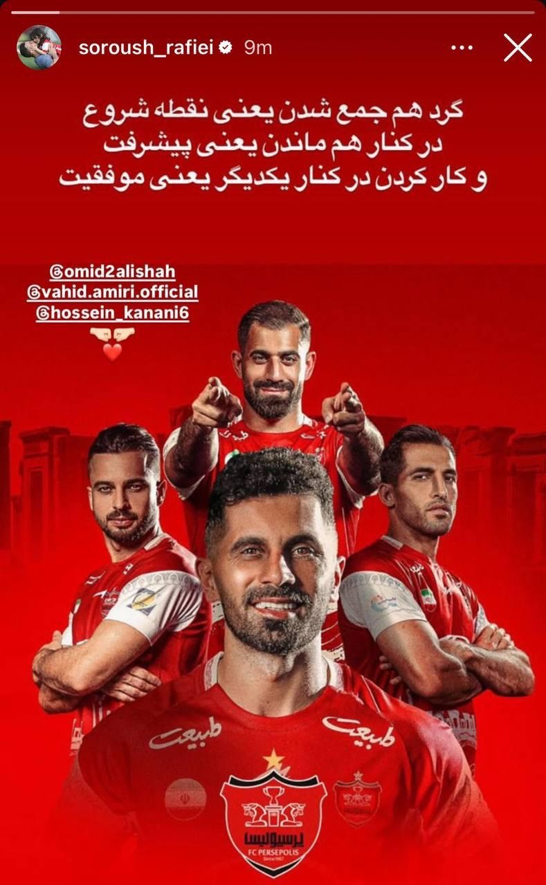 استوری سروش رفیعی بعد از جنجالهای اخیر کاپیتانی پرسپولیس