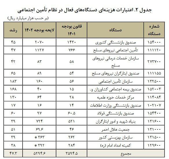 اعتبارات هزینه ای دستگاه های فعال در نظام تامین اجتماعی نسبت به بودجه ۱۴۰۱ چند درصد افزایش داشت؟!
