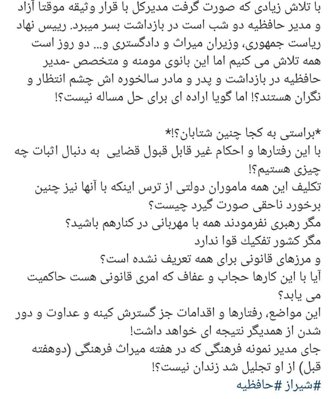 اعتراض وزارت میراث فرهنگی به بازداشت مدیر مجموعه حافظیه
