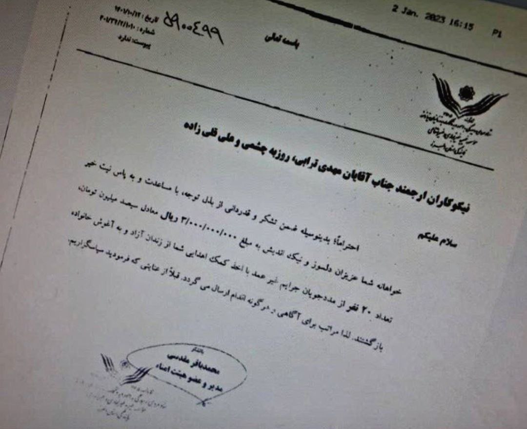 🔹 در تاریخ دوازدهم دی، روزبه چشمی، مهدی ترابی و علی قلی زاده سه بازیکن تیم ملی فوتبال ایران، در اقدامی نیکوکارانه ۲۰ نفر از زندانیانی که به جرایم غیرعمد محکوم بودند را با پرداخت مبلغ سه میلیارد ریال معادل ۳۰۰ میلیون تومان آزاد کردند.