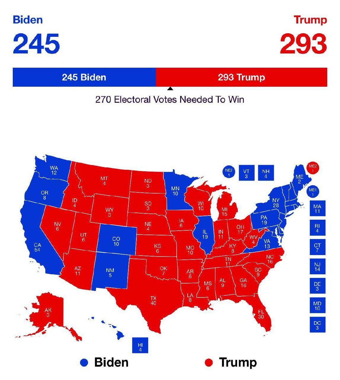 آنچه برای پیروزی لازم است ۲۷۰ امتیاز الکترال در کالج انتخاباتی است.