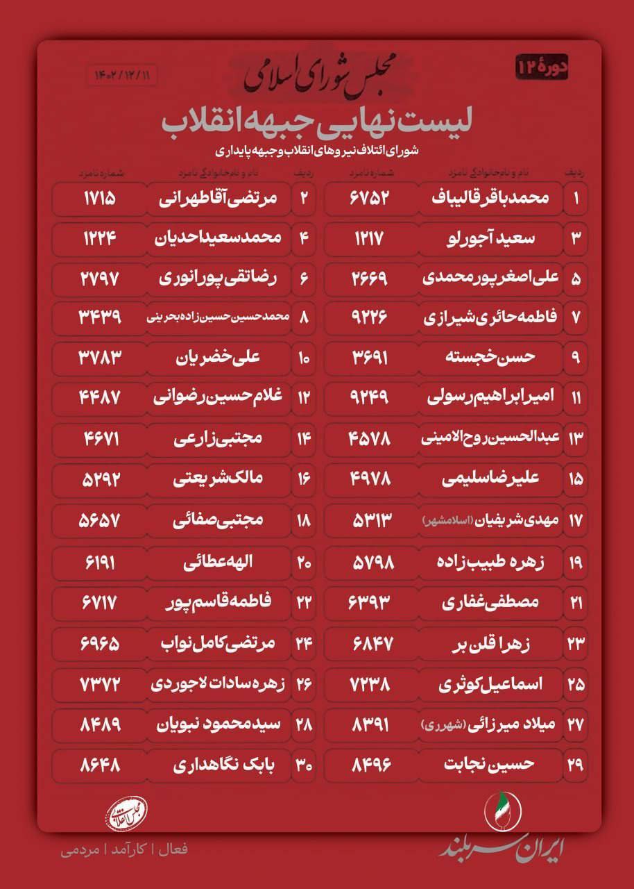 انتشار لیست نهایی “جبهه انقلاب” در تهران/ «نه» بزرگ پایداری به جریان «نه به قالیباف»