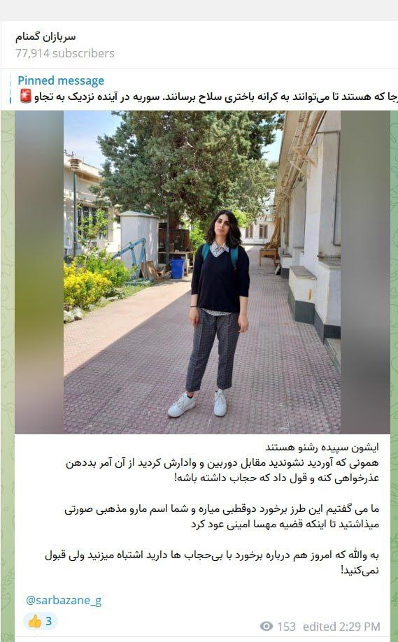 انتقاد کانال سربازان گمنام به نحوه تعامل با بیحجابی ازسوی حاکمیت: دارید اشتباه میکنید