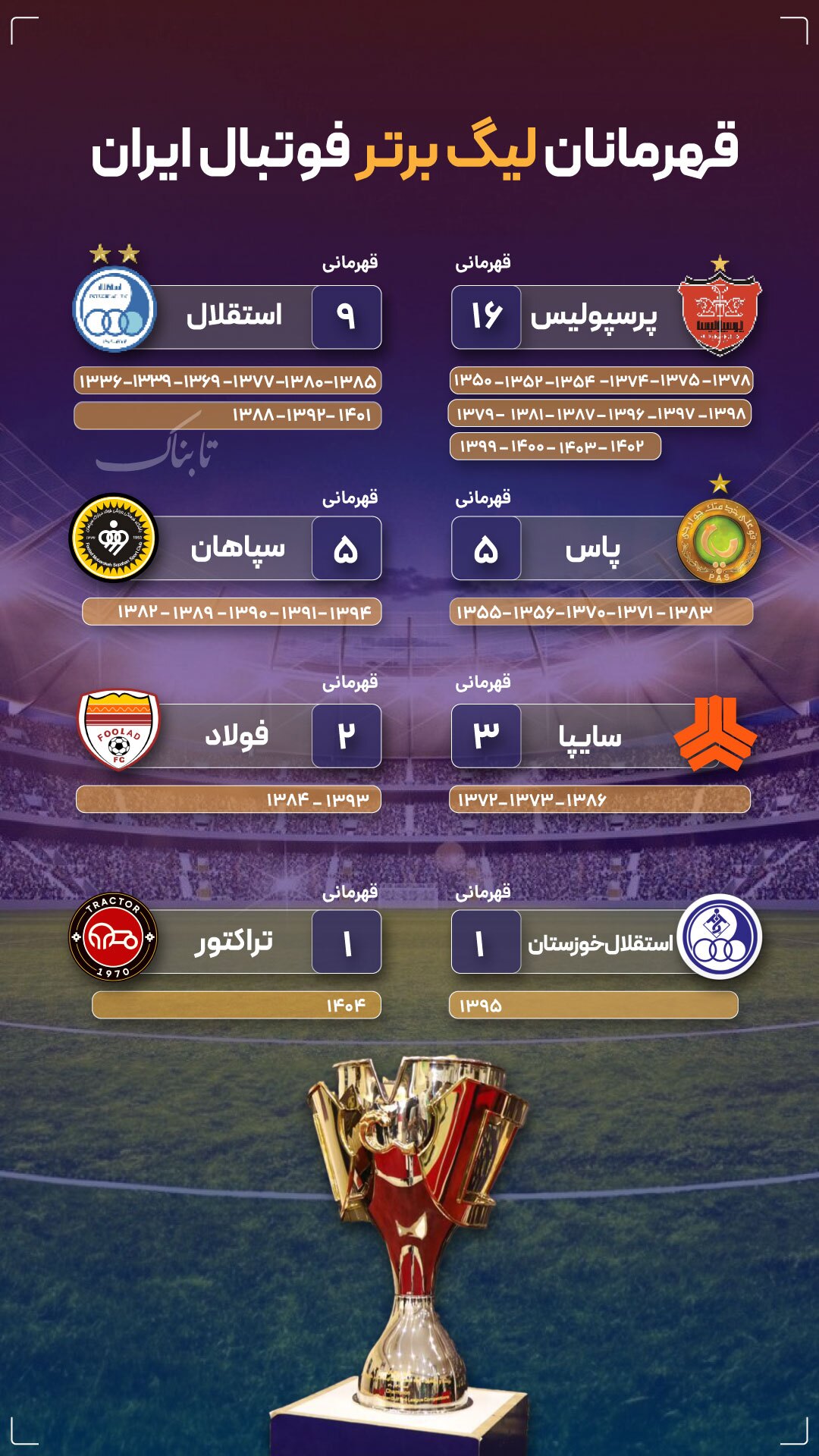 اینفوتابناک/ قهرمانان لیگ برتر فوتبال ایران