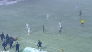 بارش شدید برف زمستانی در حین بازی ذوب آهن و نساجی در ورزشگاه فولادشهر اصفهان