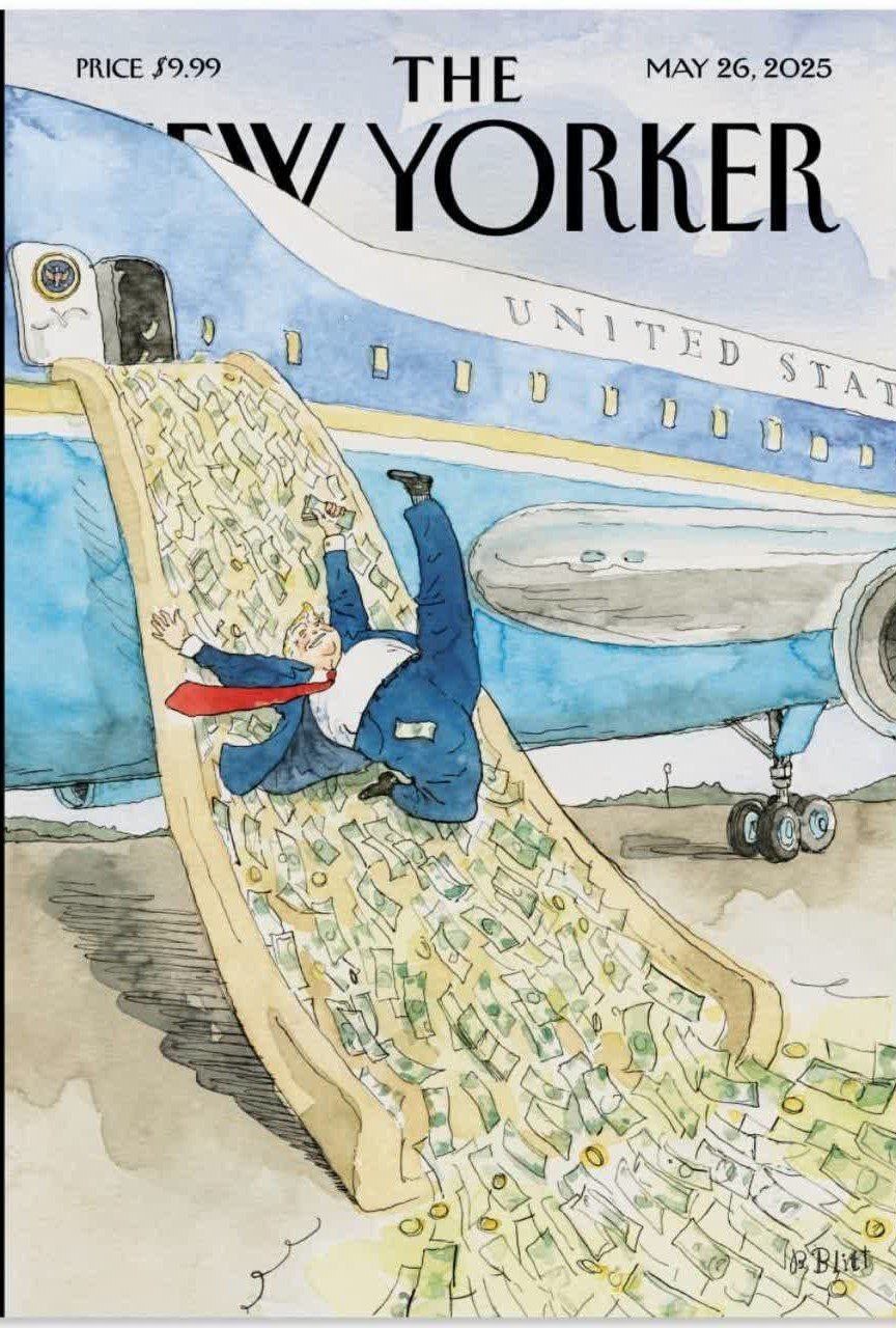 طرح روى جلد مجله نيويوركر: بازگشت ترامپ از سفر به 3 کشور ثروتمند عربی