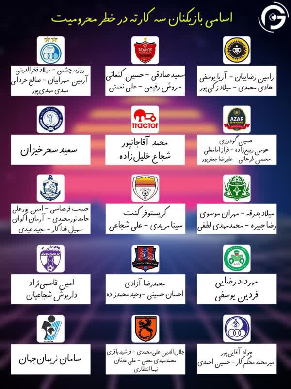 🔹اسامی بازیکنان سه کارته و در خطر محرومیت منتشر شد.