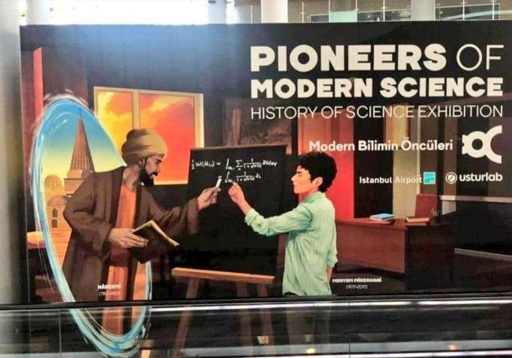 برخی کانالهای خبری نوشتند: بیلبوردی که در فرودگاه استانبول ترکیه نصب شده و خوارزمی در آن گچ کلاس درس را به مریم میرزاخانی میدهد، خبرساز شده است.