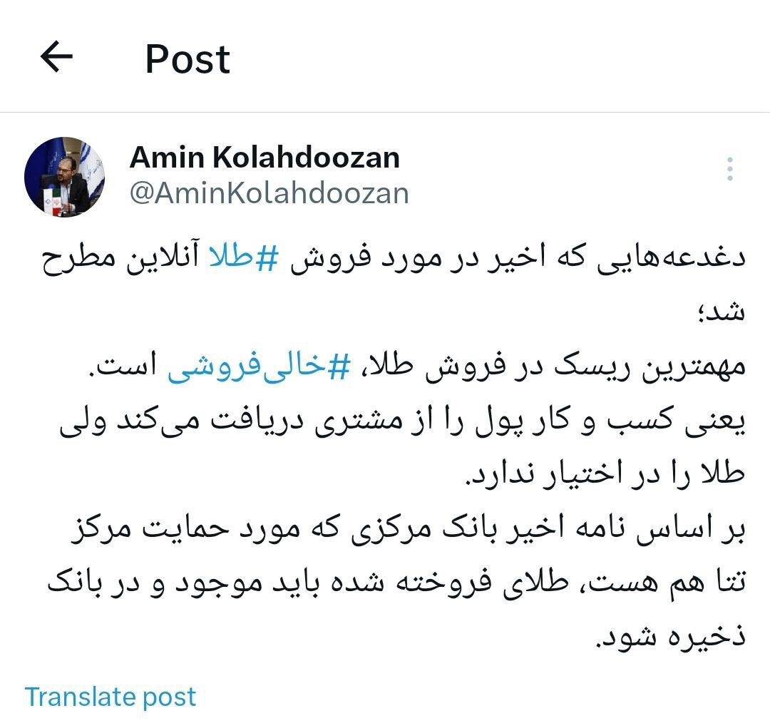 🔹 همان طور که وزارت صنعت در توییت بالا اعلام کرده طبق قوانین جدید بانک مرکزی، خرید و فروش طلای آنلاین بدون ذخیرهسازی در بانک معتبر ممنوع است.