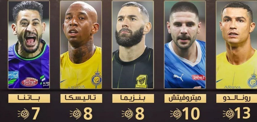 🔹در ردهبندی برترین گلزنان لیگ حرفهای عربستان نیز کریستیانو رونالدو، مهاجم تیم النصر با ١٣ گل صدرنشین است. الکساندر میتروویچ، مهاجم تیم الهلال نیز با ده گل زده رونالدوی پرتغالی را تعقیب میکند. کریم بنزما، مهاجم تیم الاتحاد پس از هتتریک برابر ابها ٨ گله شد و به رده سوم جدول برترین گلزنان لیگ عربستان صعود کرد.