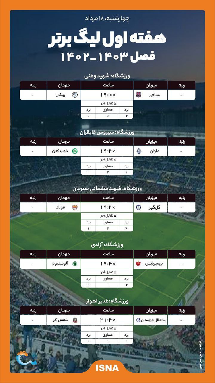 برنامه بازیهای امروز لیگ برتر فوتبال ایران در چارچوب هفته نخست