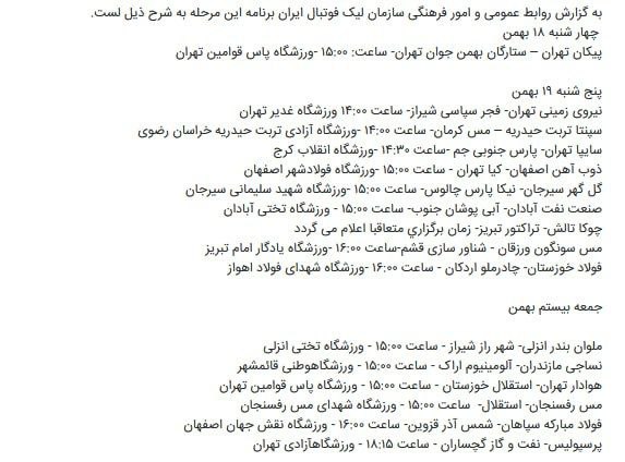برنامه مرحله یک شانزدهم نهایی جام حذفی فوتبال ایران