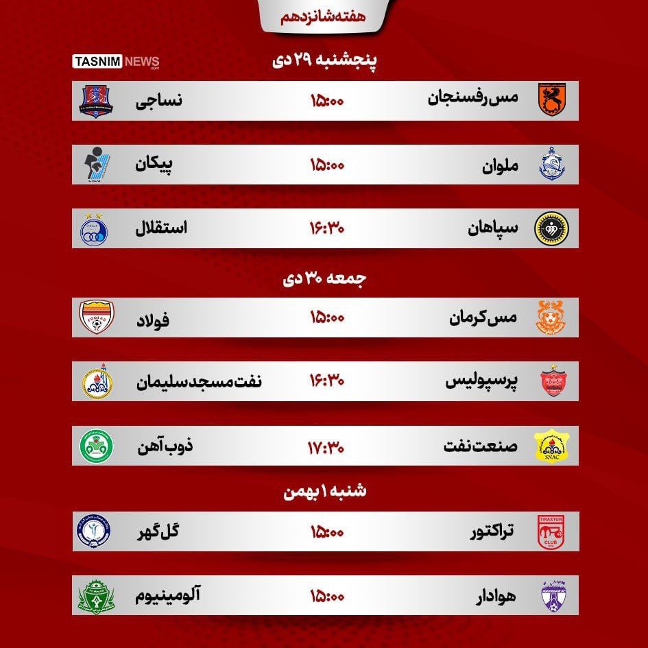 برنامه مسابقات هفته ۱۶ لیگبرتر فوتبال