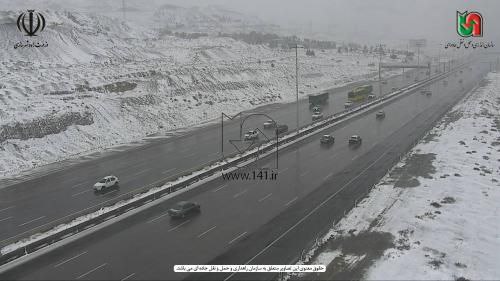 بزرگراه تهران کرج هم اکنون شاهد بارش برف است.