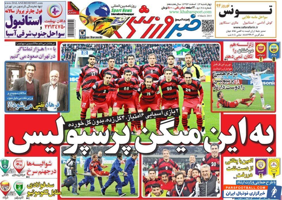 پرسپولیس دوازدهم اسفند سال ۱۳۹۳ دومین مسابقه خود در رقابتهای مرحله گروهی لیگ قهرمانان سال ۲۰۱۵ را برابر بنیاد کار برگزار کرد و توانست میزبان ازبکستانی خود را با یک گل شکست بدهد تا دومین پیروزی متوالی در این پیکارها را جشن بگیرد و بدون گل خورده صدرنشین گروهش شود. دقیقاً به همین خاطر، خبر ورزشی سیزدهم اسفند سال ۱۳۹۳ با اشاره به نمایش عالی سرخپوشان ایرانی تیتر زد: “به این میگن پرسپولیس”