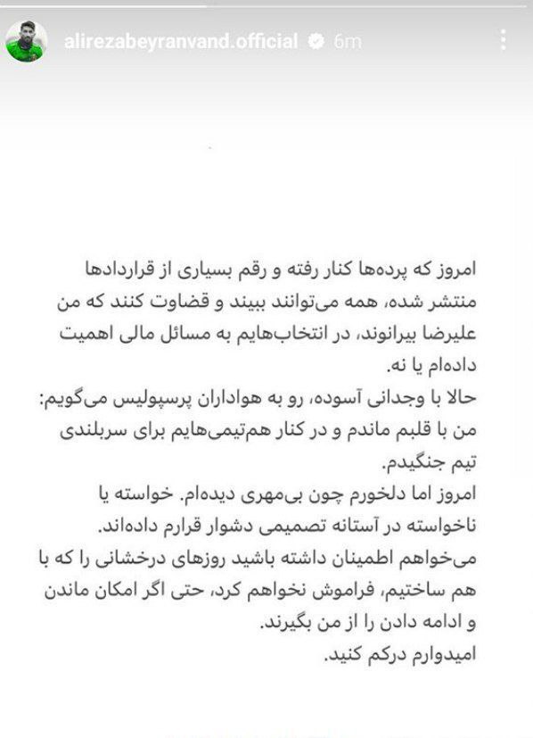 علیرضا بیرانوند خطاب به هواداران پرسپولیس: