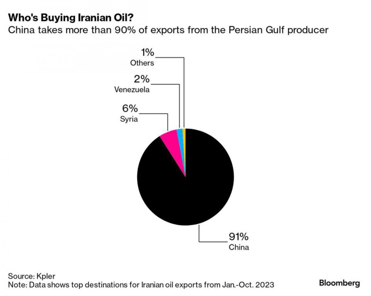 🔹همچنین تقریبا همه نفت ایران به چین صادر میشود و میزان تقاضا نفت چین تعیین کننده میزان صادرات ایران است/