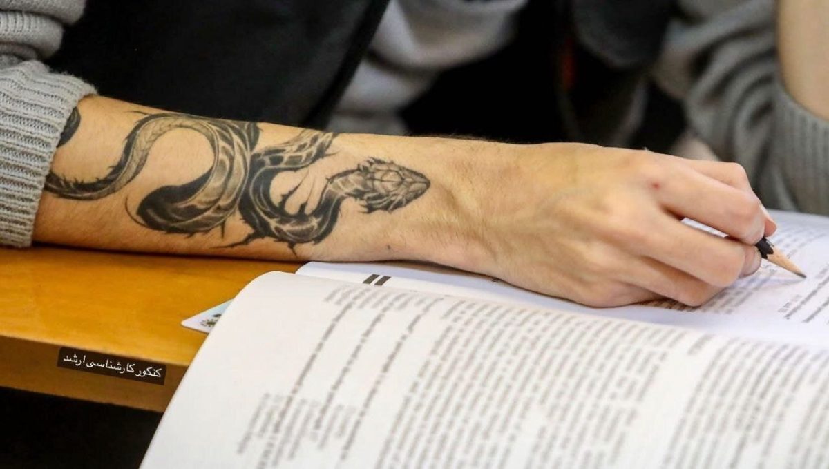 🔹کنکور داوطلبان کارشناسی ارشد برگزار شد، مانند همیشه که برگزاری جلسات کنکور حواشی خودش را دارد، تصویر بالا یکی از همین حاشیهها بود، تتو جالب داوطلب کنکور سوژه لنز دوربین عکاسها شد.