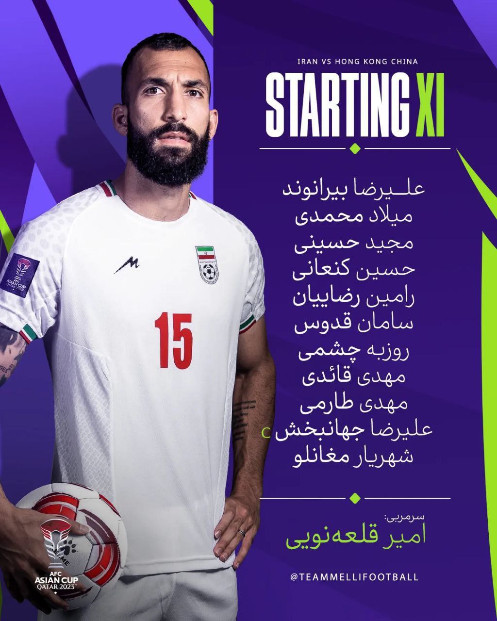 ترکیب ایران مقابل هنگ کنگ