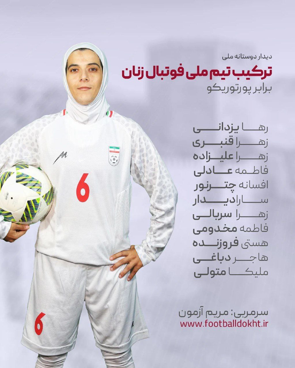 ترکیب تیم فوتبال زنان ایران برای دیدار با پورتوریکو