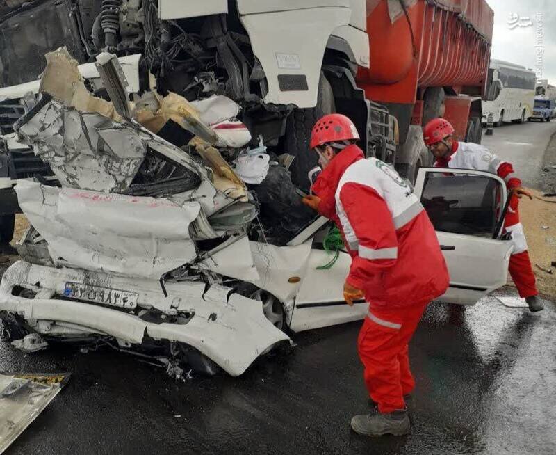 تصادف مرگبار در محور سلفچگان به اراک/چیزی که از خودروی تولید داخل باقی ماند، همین بود/ سه نفر هم جان باختند