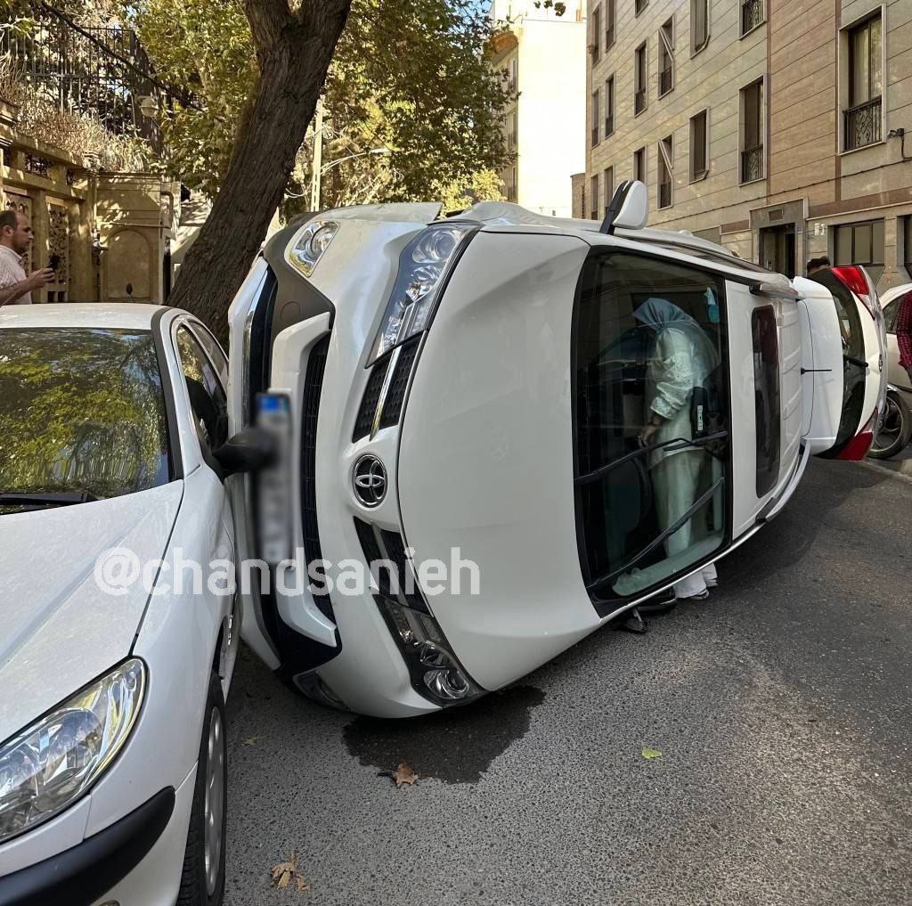 تصویری از تصادف یک خودروی تویوتا و وضعیت عجیب راننده!