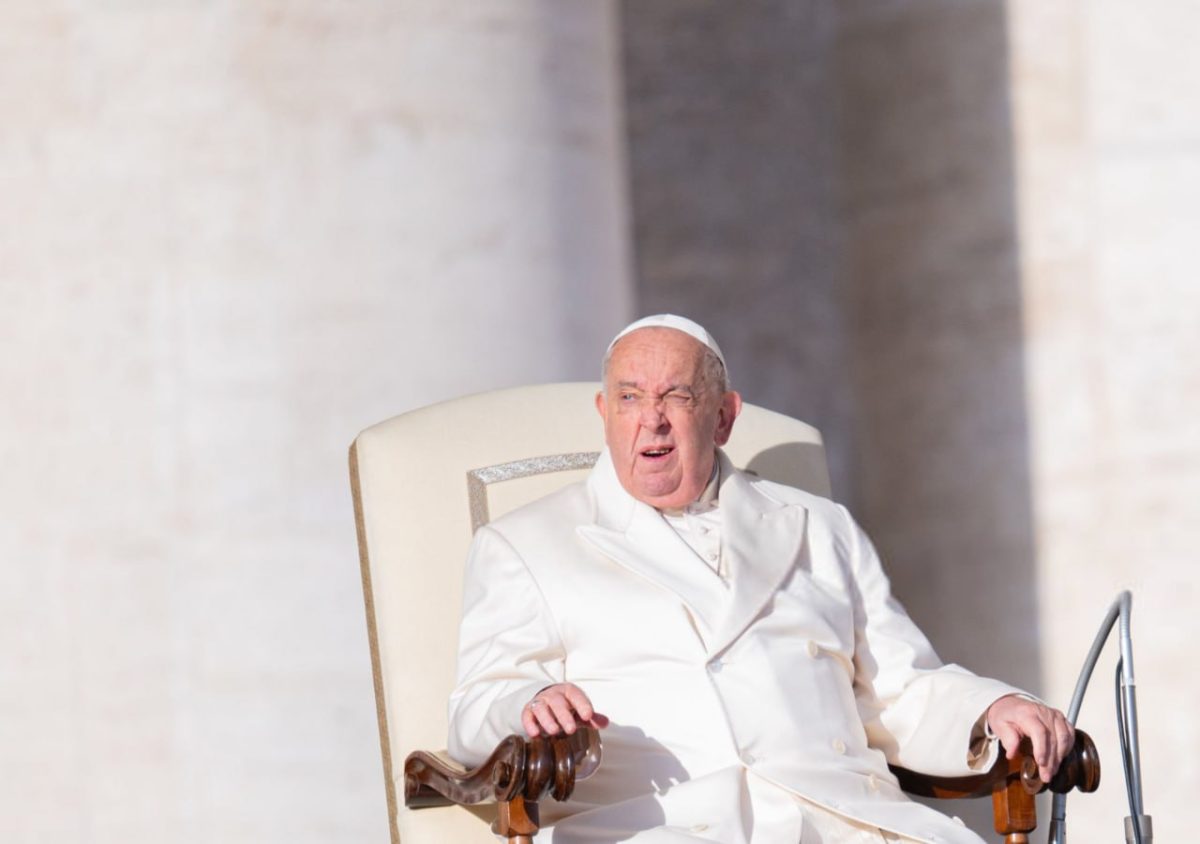 تصویری از پاپ فرانسیس رهبر کاتولیک های جهان در مراسم دیدار عمومی با مردم در میدان سنت پیتر واتیکان