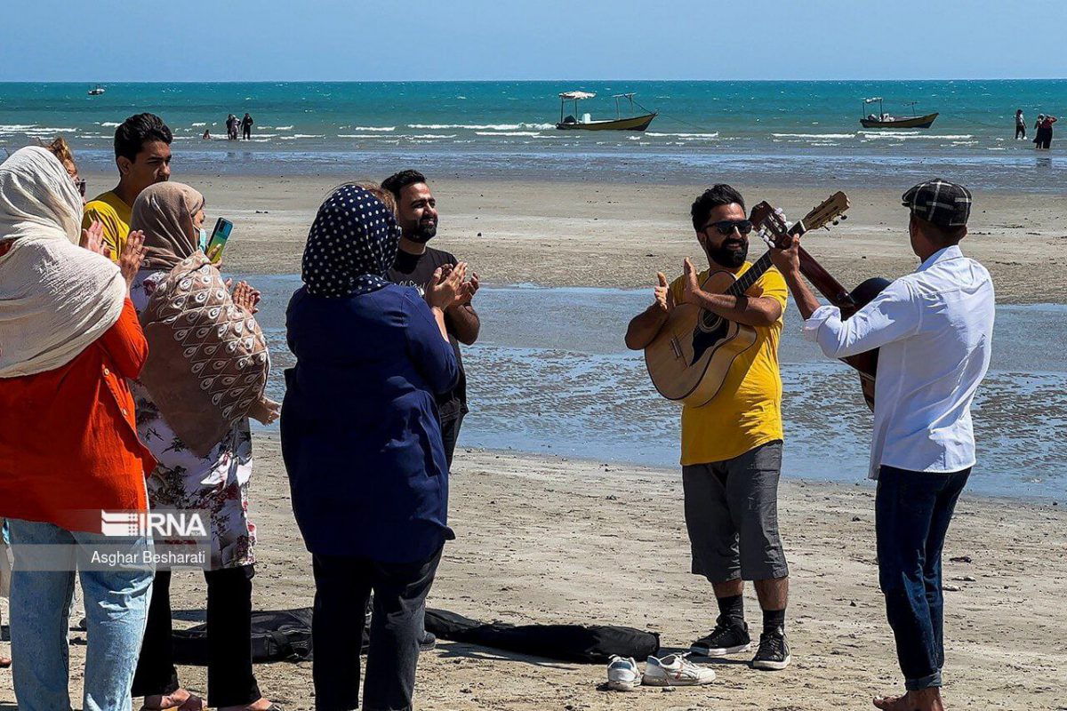 تصویر ایرنا، خبرگزاری دولت، از مسافران نوروزی در جزایر ناز در قشم