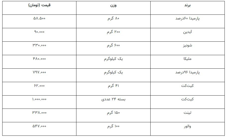 تلخکامی دوستداران شکلات تلخ ؛ ۱۰۰ گرم شکلات ۵۴۷ هزار تومان!/ جدول قیمت انواع شکلات تلخ ایرانی و خارجی را ببینید
