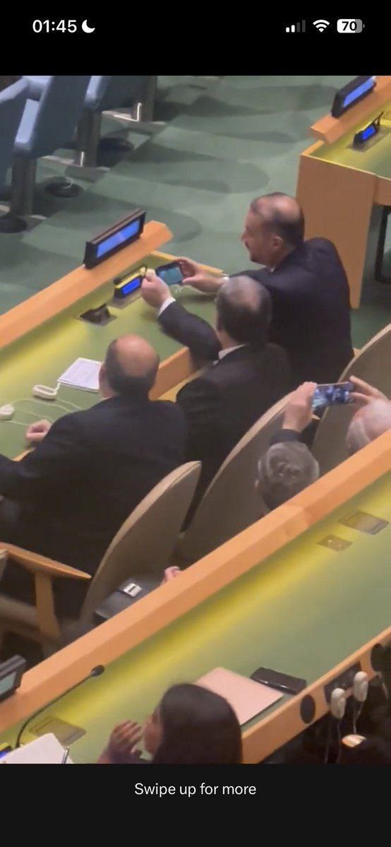 تماشای فوتبال در سازمان ملل توسط وزیر خارجه ایران سوژه فضای مجازی شده است