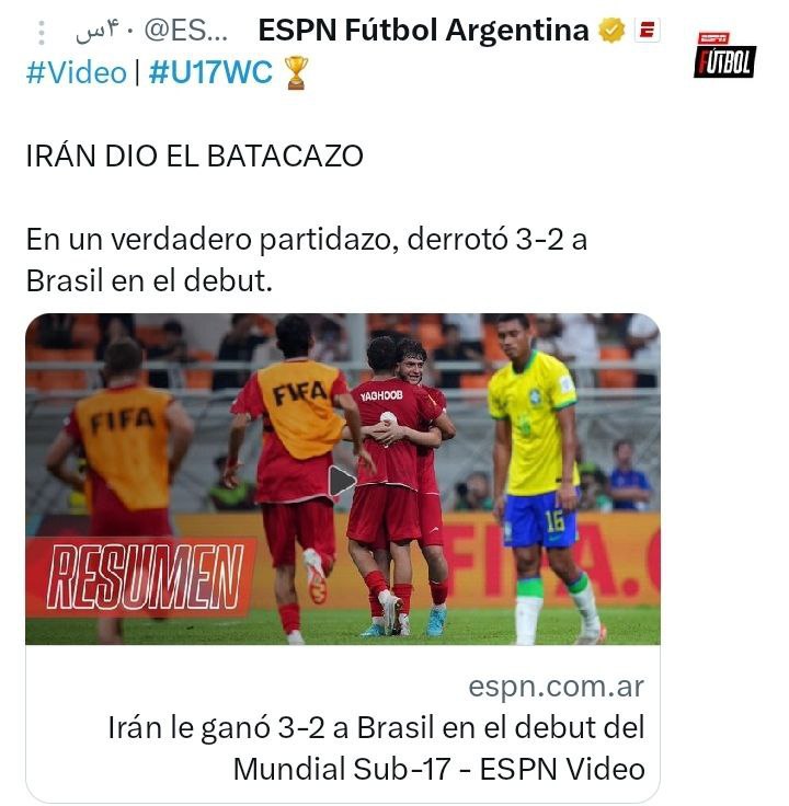 تمجید رسانه ESPN از عملکرد شاگردان عبدی: تیم ملی ايران در یک بازی واقعا عالی برزیل را شکست داد