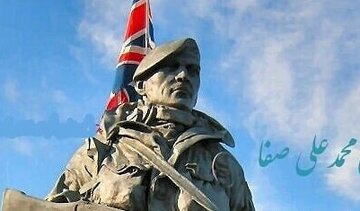 «تندیس» یادبود رزمنده ایرانی «شکارچی تانک» در پایگاه انگلیسی +