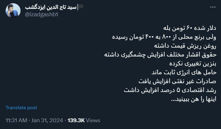 توئیت عجیب یکی از فعالین رسانهای هوادار دولت: دلار ۶۰ تومن شده اما بنزین گران نشده! برنج هم ارزان شده