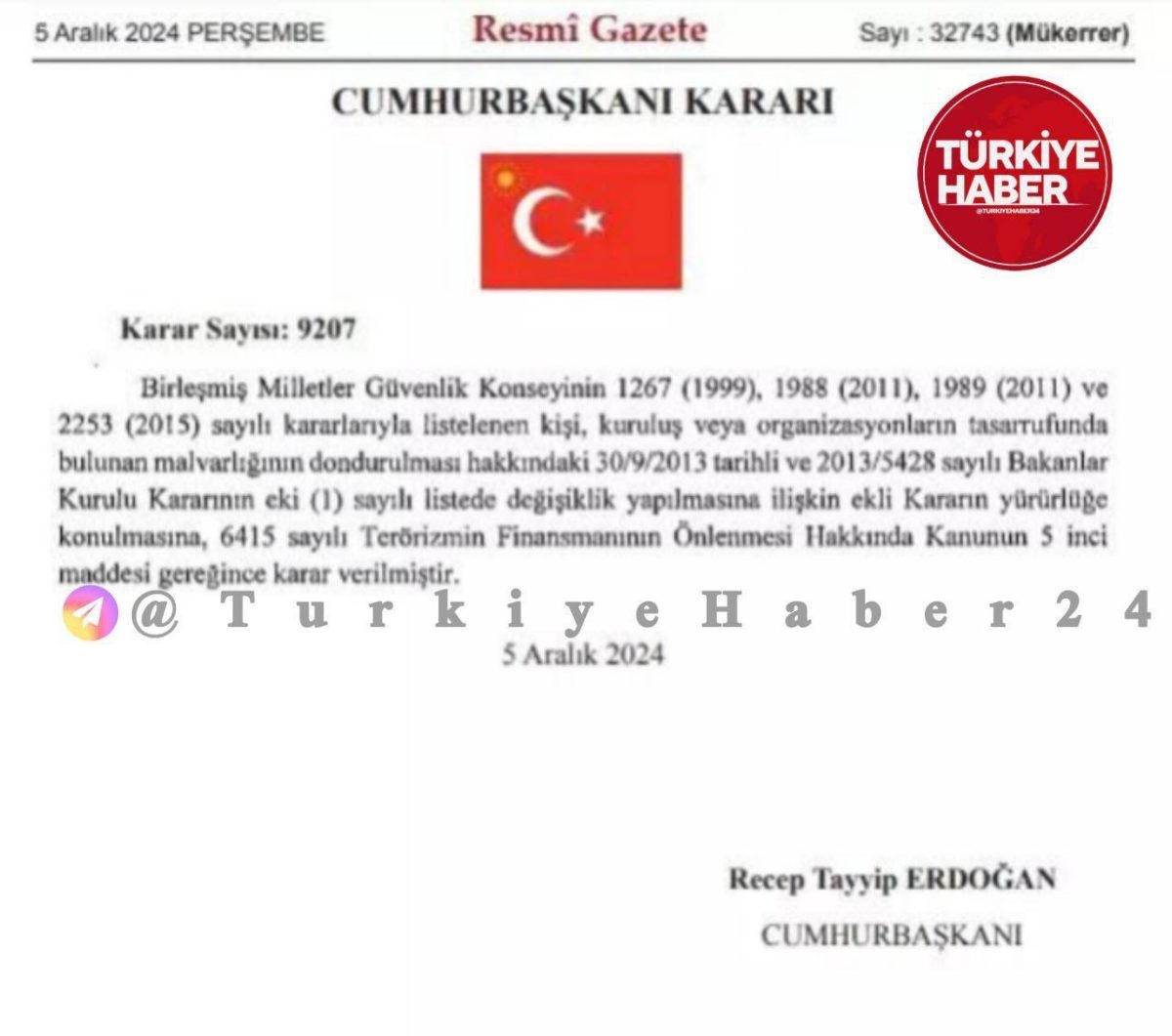 🔹اردوغان در عمل به قطعنامه شورای امنیت درباره توقیف اموال نیروهای تروریستی این دستور را صادر کرده است.