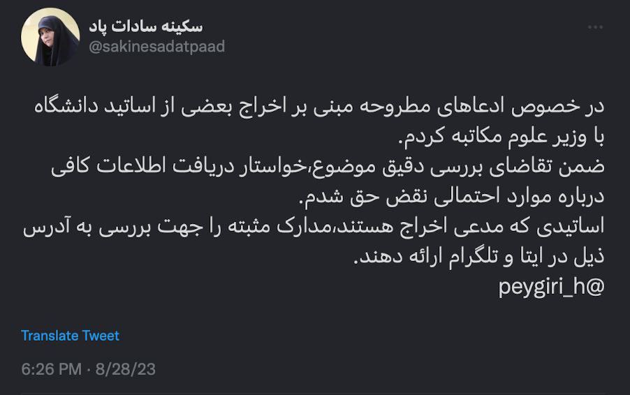 توییت دستیار رییس جمهور برای پیگیری تظلم خواهی اساتید اخراج شده