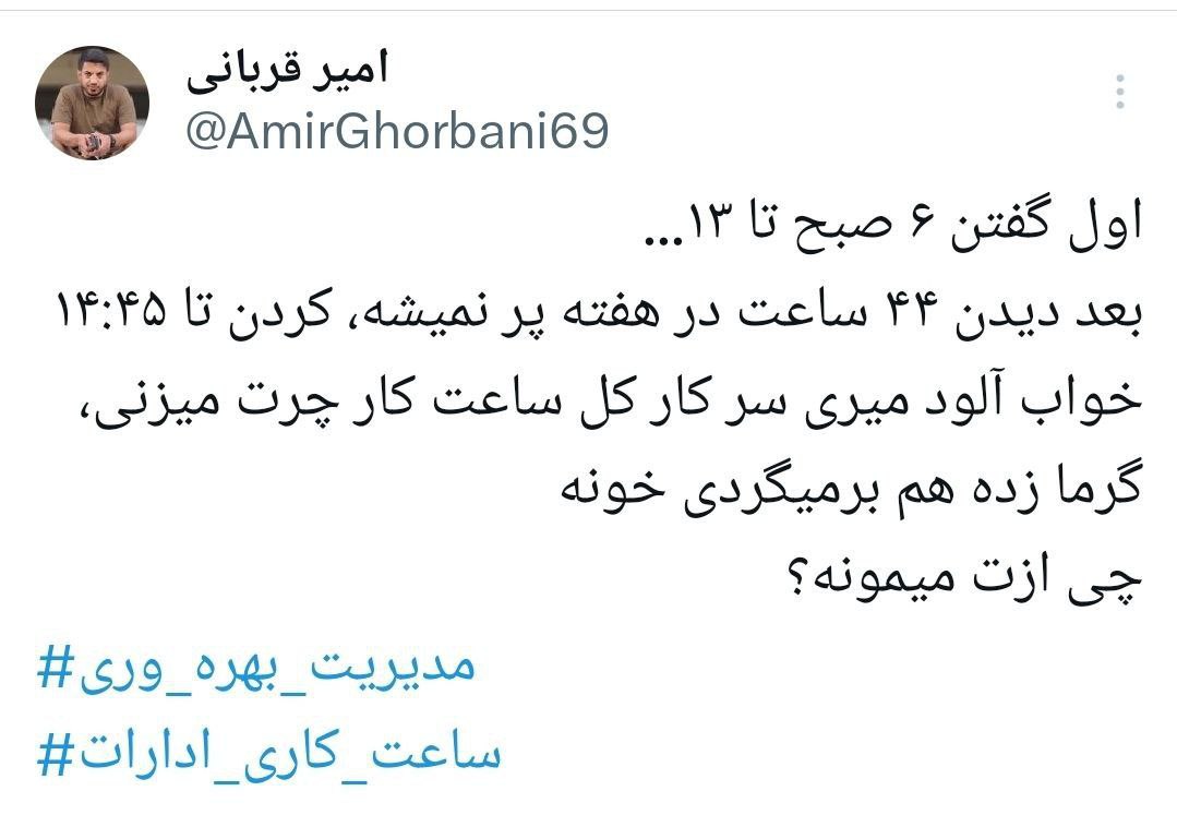 توییت یک فعال رسانه اندر حکایت حکمرانی علی اصغری در ماجرای ساعت کاری ادارات
