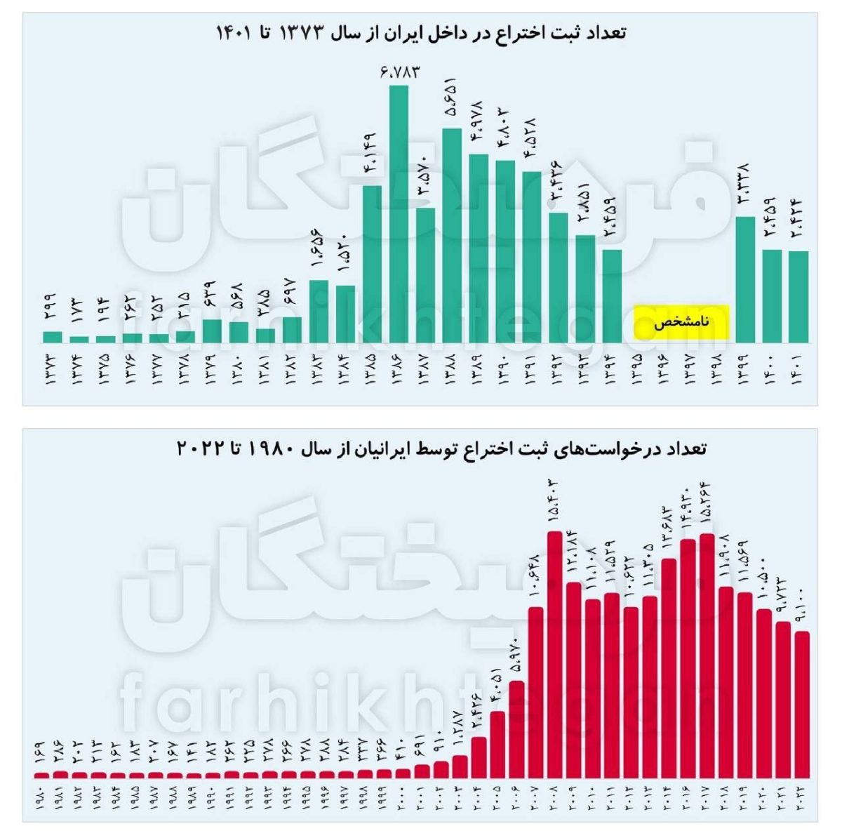 🔹فرهیختگان نوشت: آمارها از کاهش ثبت اختراع در یک دهه اخیر خبر میدهند. ایران در موضوع اختراعات در آخرین رتبهبندی جهانی سال ۲۰۲۳ با ۱۷۶۸ اختراع که پرونده آنها در کشور ثبت شده، در جایگاه ۵۱ جهان جای گرفته است.